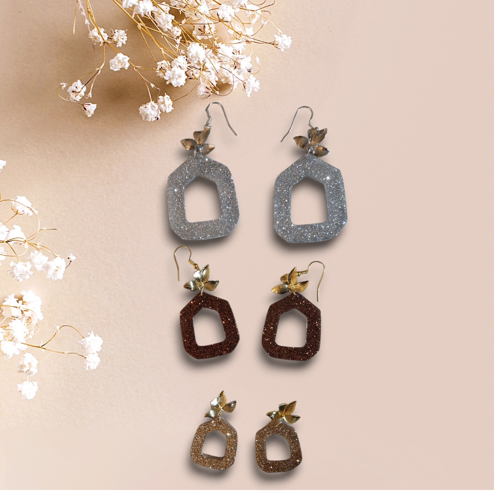 Découvrez nos boucles d'oreilles pendantes en résine époxy.